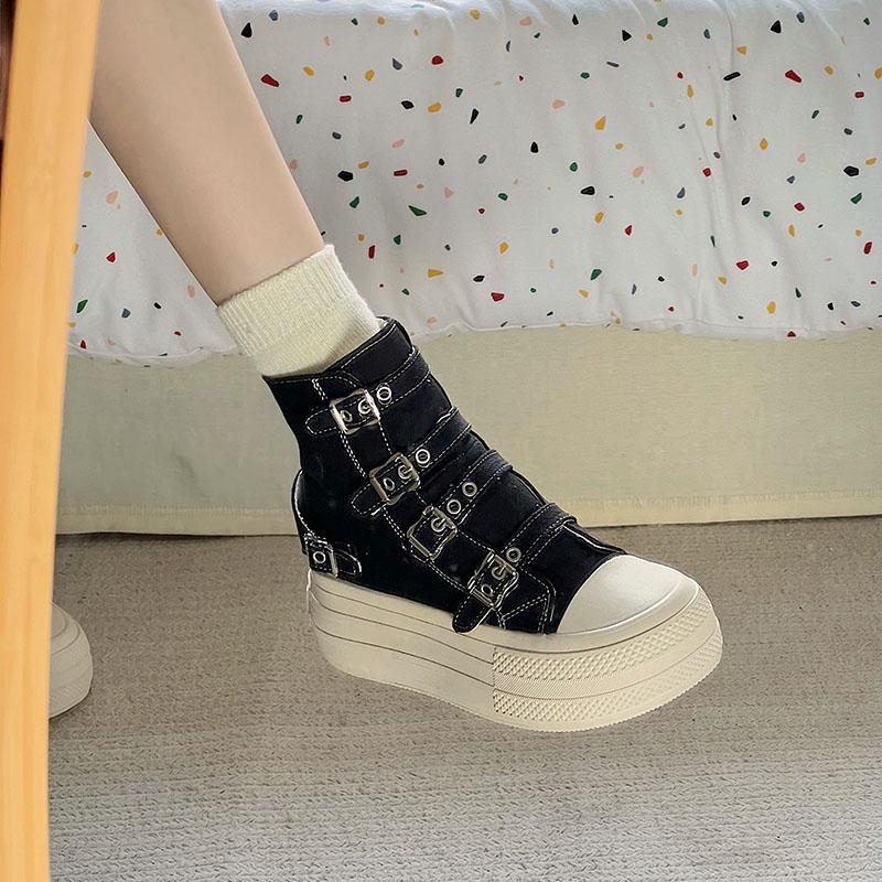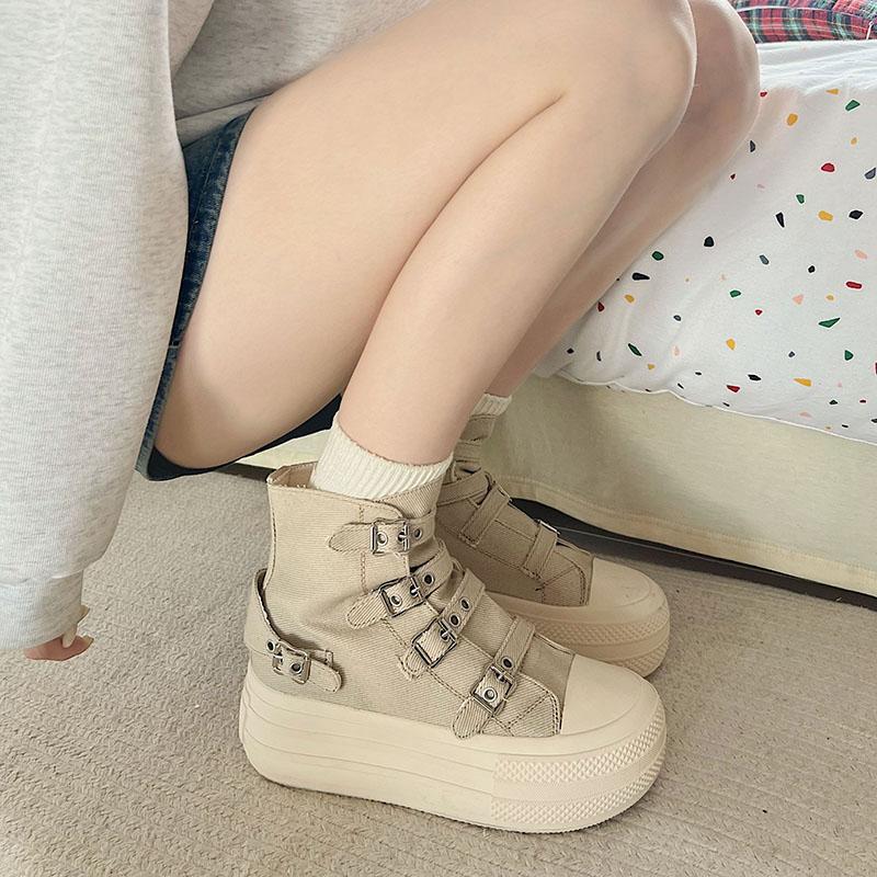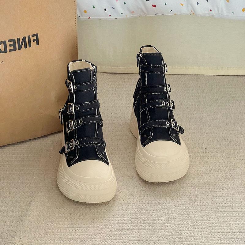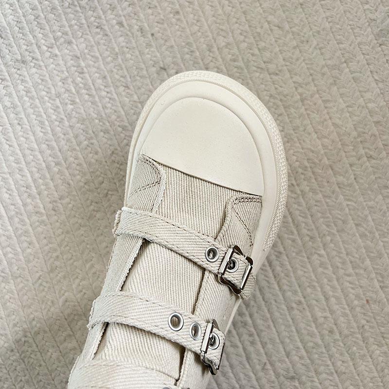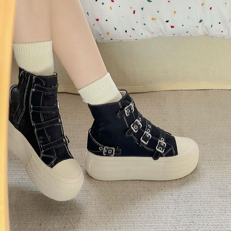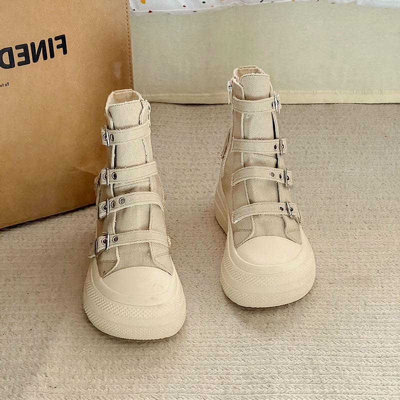 Модные женские высокие парусиновые кеды Дизайн Пряжка-ремешок Молния Простота Женская обувь 2025 Уличный стиль Грация Обувь для ходьбы