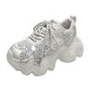 Модная женская обувь на высокой платформе 8 см, белые кроссовки, новинка лета 2025 года, дышащие, с кристаллами, на массивной подошве, дизайнерская спортивная обувь на толстой подошве