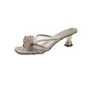 Модные Горячие Продажи Лето 2025 Новые Жемчужные Цветы Модные Универсальные Квадратный Носок Французская Леди Высокий Каблук Римские Сандалии Женские Шлепанцы