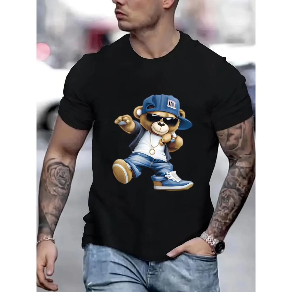 Мужская летняя модная повседневная спортивная футболка свободного кроя из 100 хлопка с принтом в виде мультяшного крутого медведя и круглым вырезом с коротким рукавом