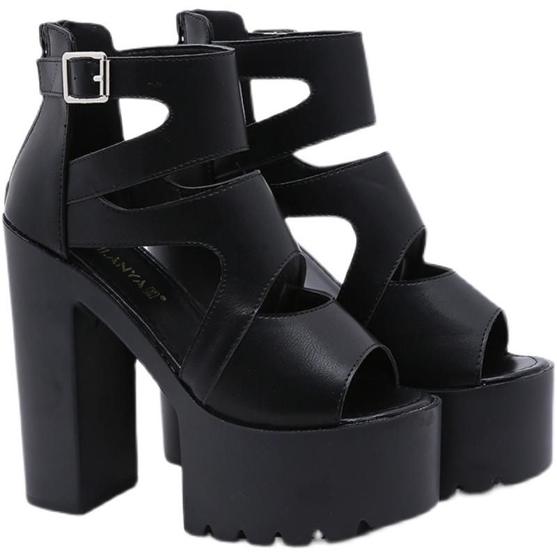 Мода 14 см Римские сандалии гладиаторы Женские с открытым носком Панк-рок Готика Толстая платформа Массивный блочный высокий каблук Сандалии Женская обувь