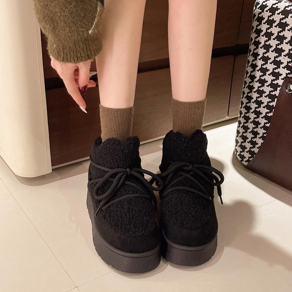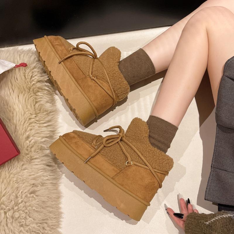 Модные зимние хлопковые ботинки на платформе с перекрестными ремешками, 2025, новые, с флисом и утолщенным тепловым коротким голенищем, слипоны, сноубутсы