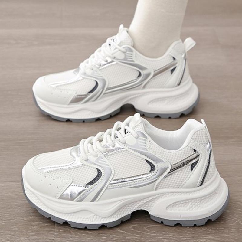 Fashion Comfortable Breathable Mesh Walking Sports Shoes Women Non Slip Platform Sneakers Woman Mix Color Lace Up Casual Shoes Mujer