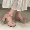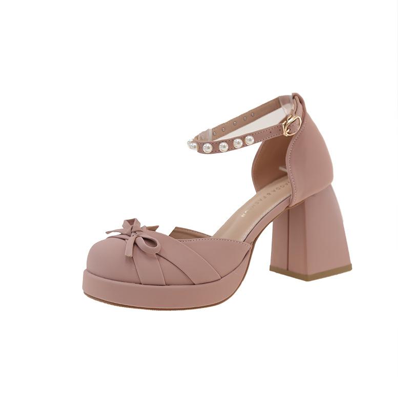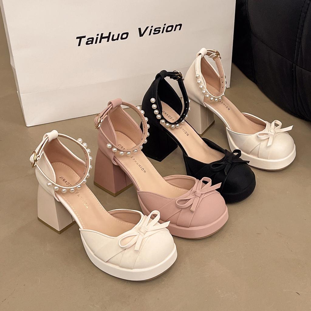 Мода Горячая Распродажа Французский Толстый Каблук Высокий Каблук Женские Новинка 2025 Лето Толстая Подошва Бант Мэри Джейн Закрытый Носок Сандалии Резиновая Подошва Круглый Носок