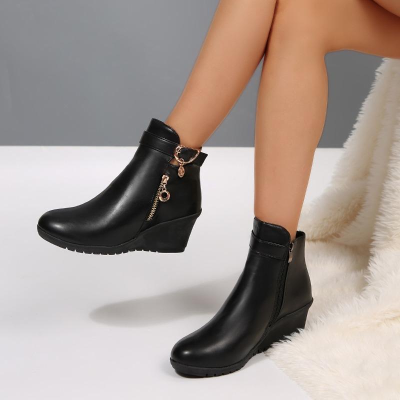 Модная обувь на танкетке с мягкой подошвой и круглым носком для мам, женская обувь из хлопка для среднего и пожилого возраста, короткие ботинки на осень и зиму