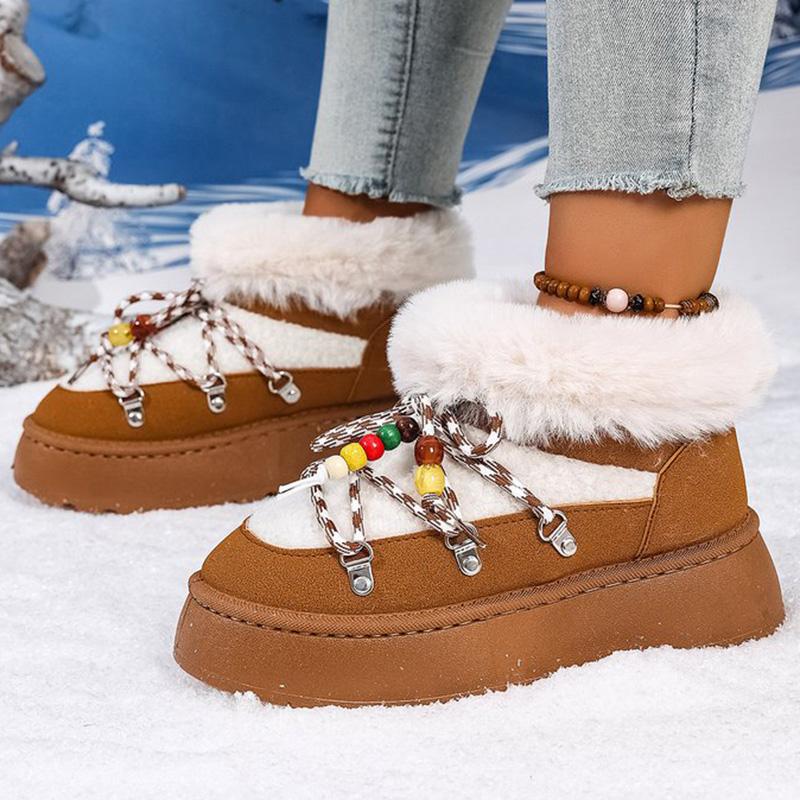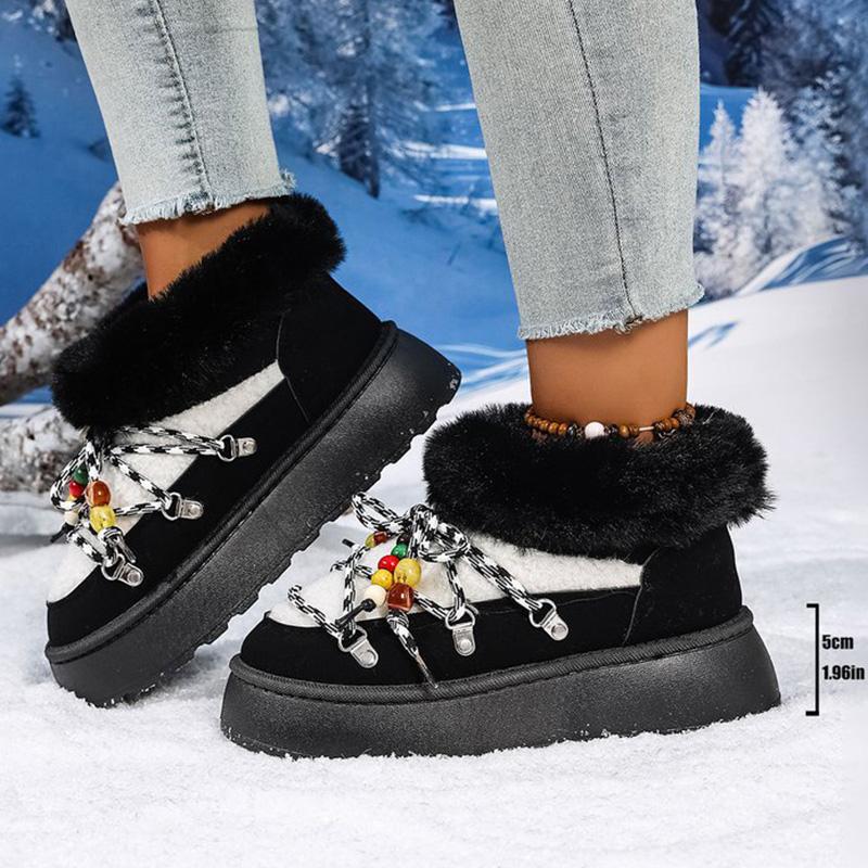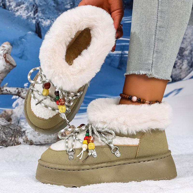 Модные богемные шнурованные ботинки-дутики с бусинами для женщин, зимние теплые ботильоны из мягкого искусственного меха, женские ботинки большого размера 36-43 на платформе Botas Mujer