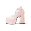Модные милые розовые туфли-балетки на толстой подошве из лакированной кожи с перекрестной пряжкой на массивном высоком каблуке, женские туфли для платья, элегантные лодочки в стиле Лолита для вечеринки