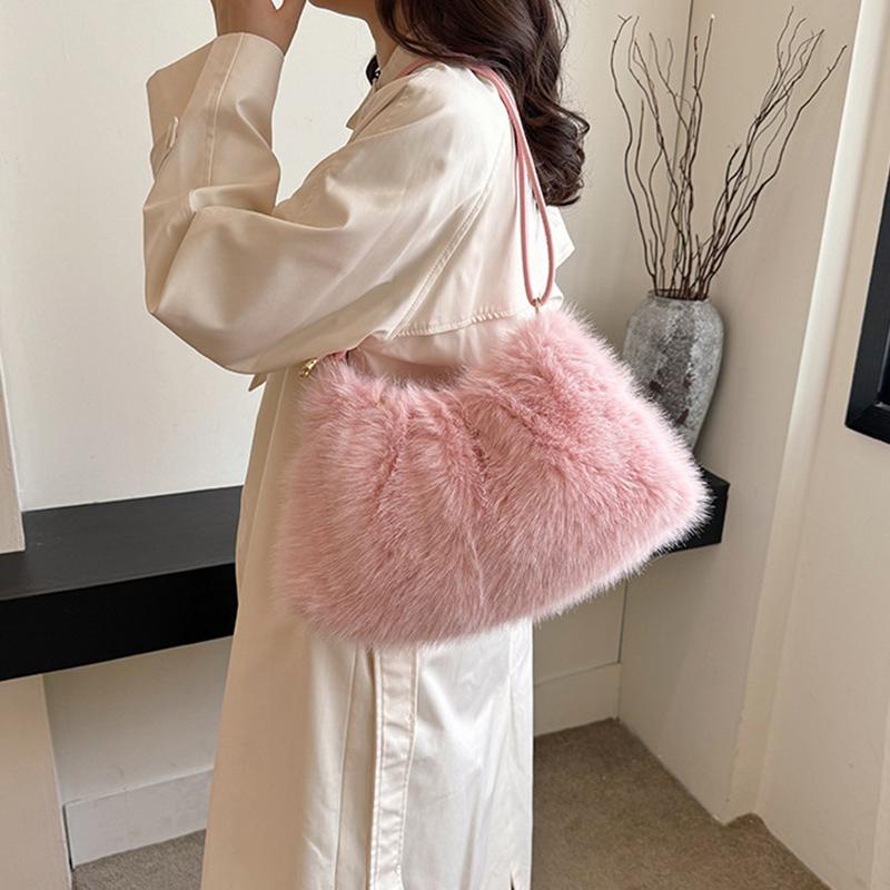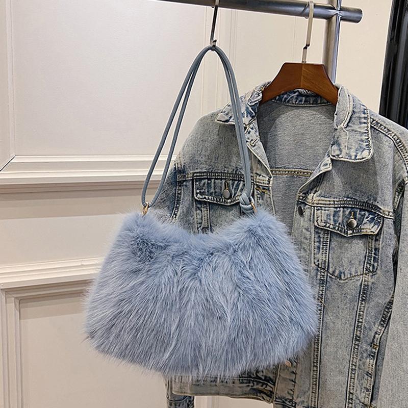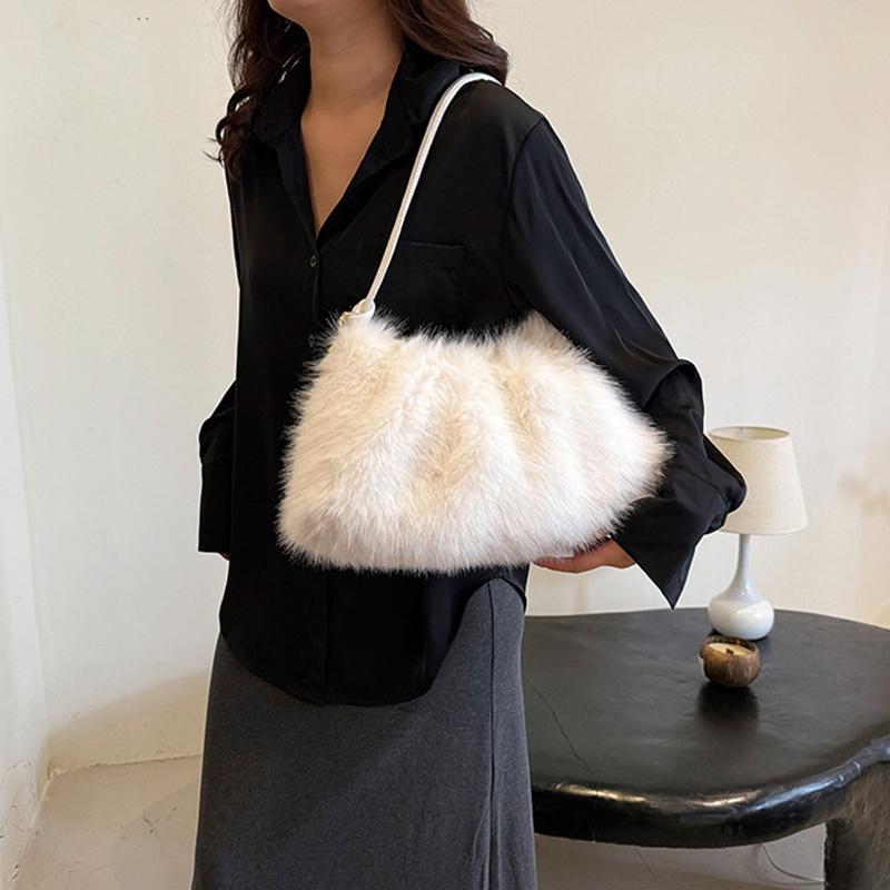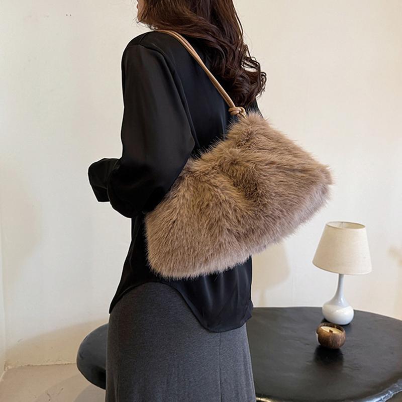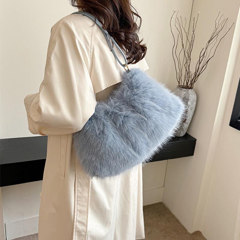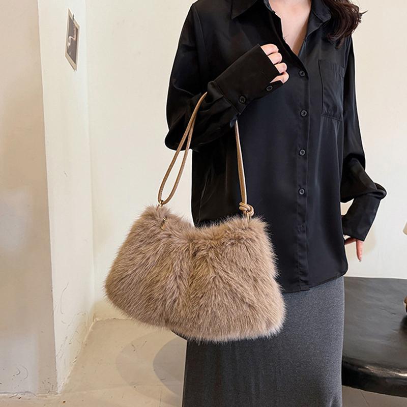 Роскошная пушистая сумка через плечо однотонная мягкая сумка-тоут большая вместимость пушистый клатч