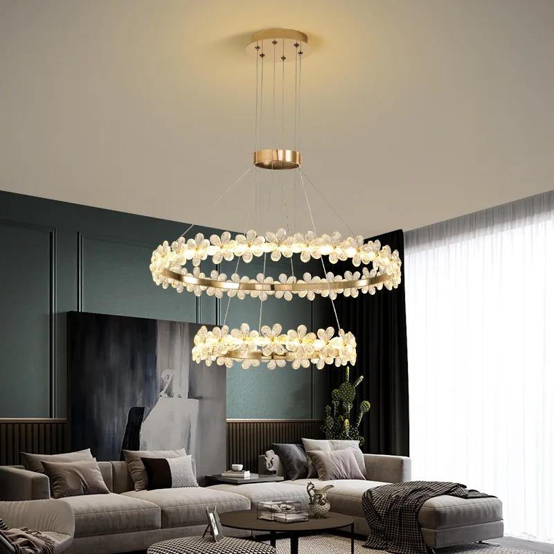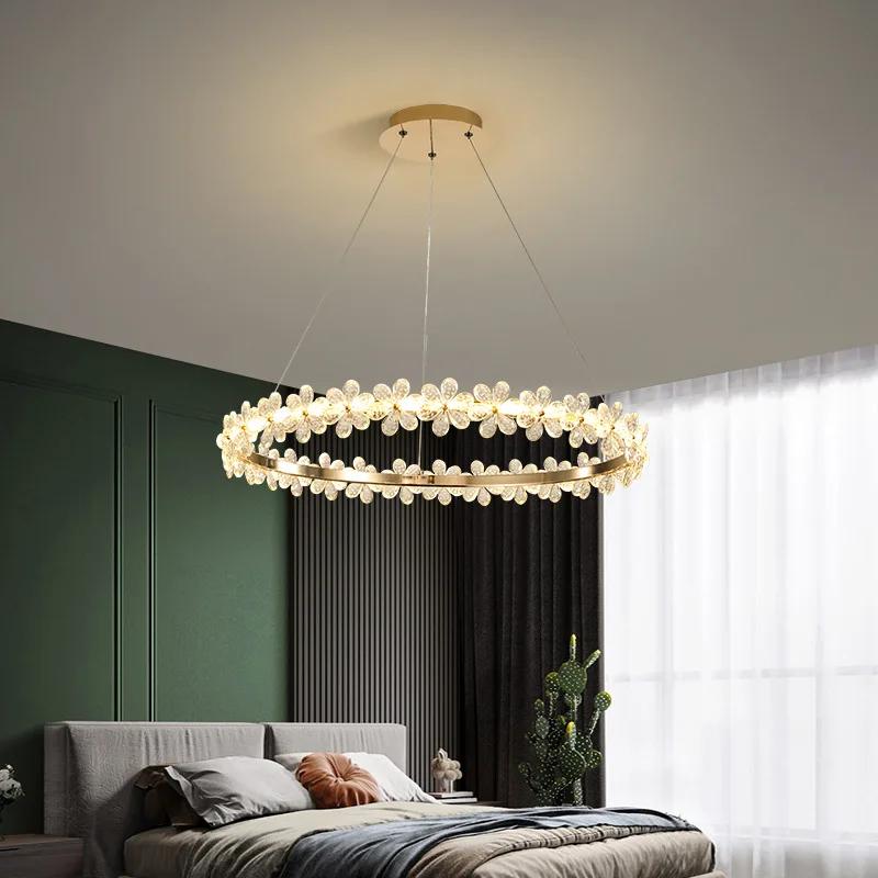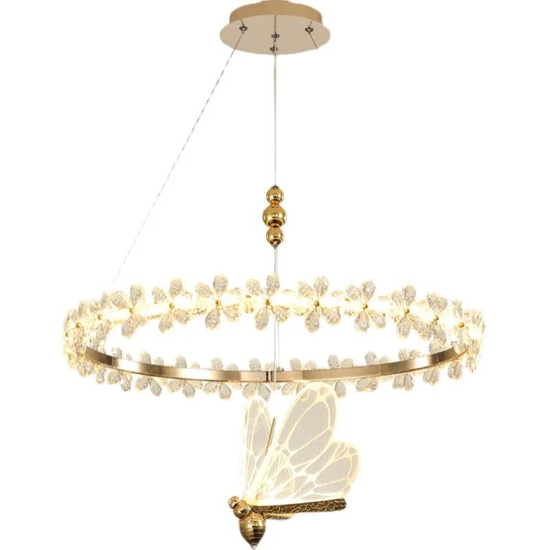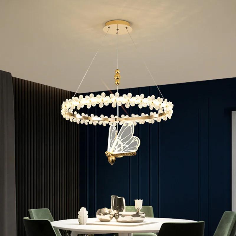 Современные хрустальные потолочные люстры с цветочным кольцом, подвесные светильники в виде бабочек, светильники для гостиной, обеденного стола, островного домашнего декора