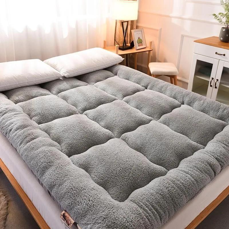 Мягкий матрас татами из кашемира ягненка - Складной топпер для односпальной/двуспальной кровати, Толстый теплый мат с ремнями для спальни