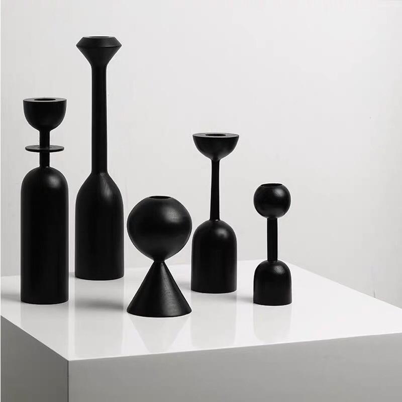 Реквизит для фотосъемки Черный Подсвечник из массива дерева Скандинавский Минималистичный Стиль Декоративная Модель Креативные Художественные Украшения WF