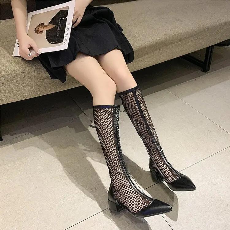 Модные тонкие сетчатые ботинки Мартин для женщин, на толстом каблуке, дышащие сетчатые полые короткие ботинки, лето 2025, новые сандалии на толстой подошве и высоком каблуке