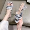 Fashion Summer Fancy Fashion Breathable Leather Clear Square Heel Sandals New Square Toe Open Toe Versatile Slippers