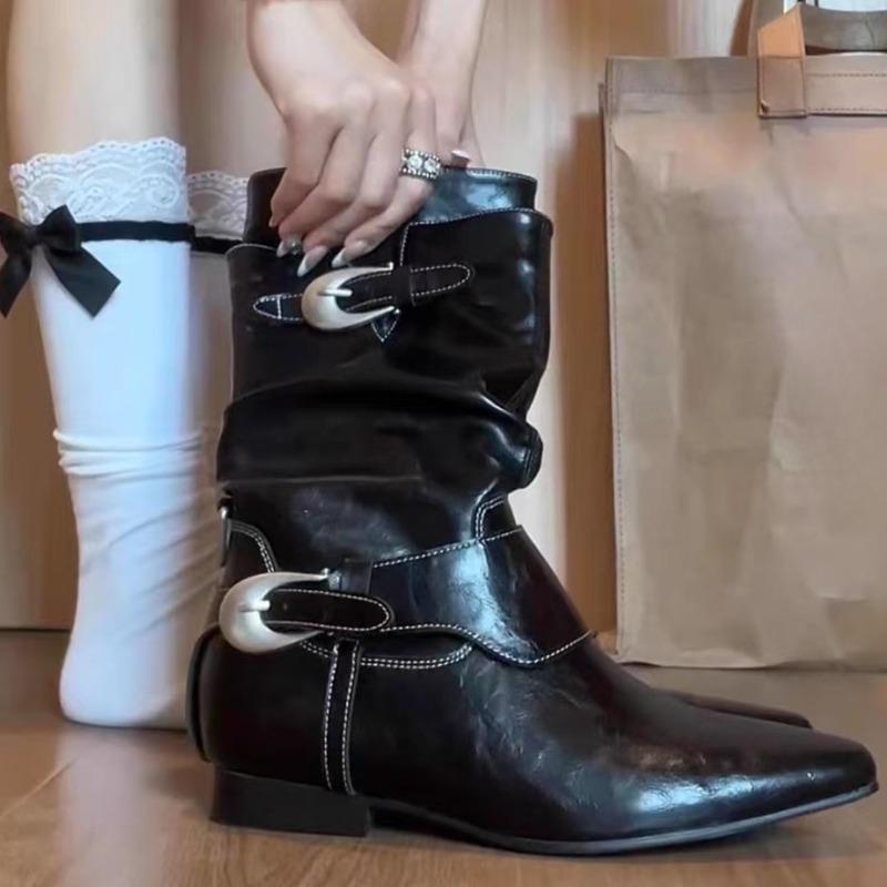 Модные ретро рыцарские ботинки Осень Новая мода Острый носок Металлическая пряжка ремня Внутри на высокой платформе Противоскользящие Износостойкие Средние