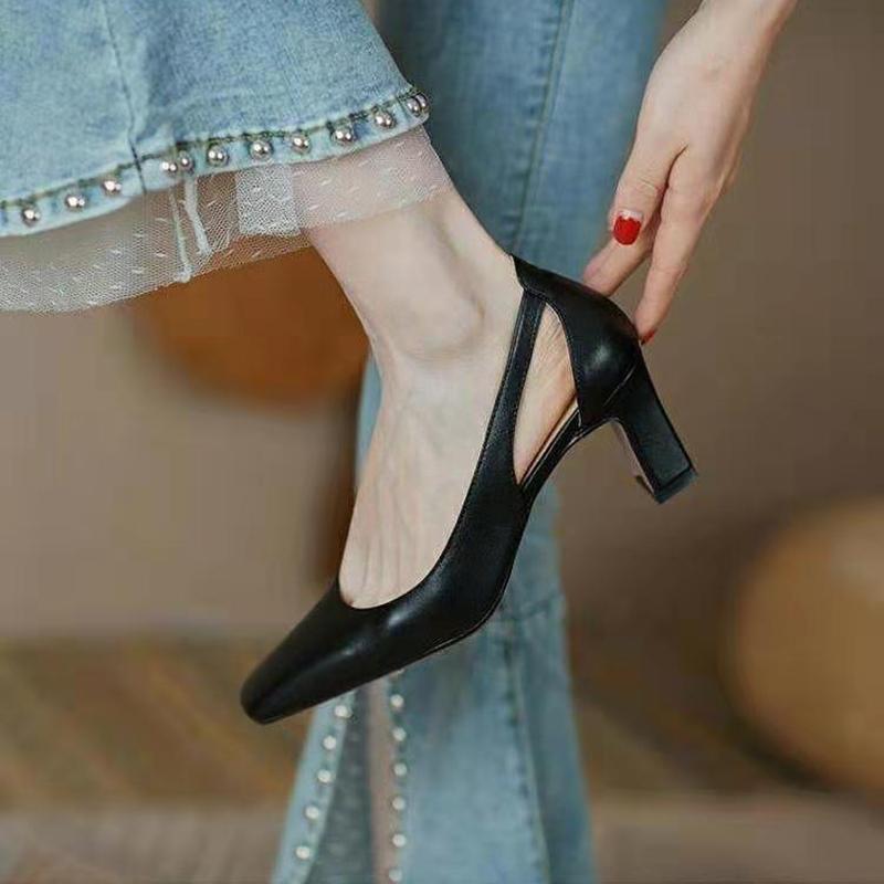 Мода Весна Лето Женские Туфли-лодочки Однотонные Толстый Высокий Каблук Женская Обувь Пустотелый Квадратный Носок Ретро Слипоны Каблуки Женское Платье Tacones Mujer