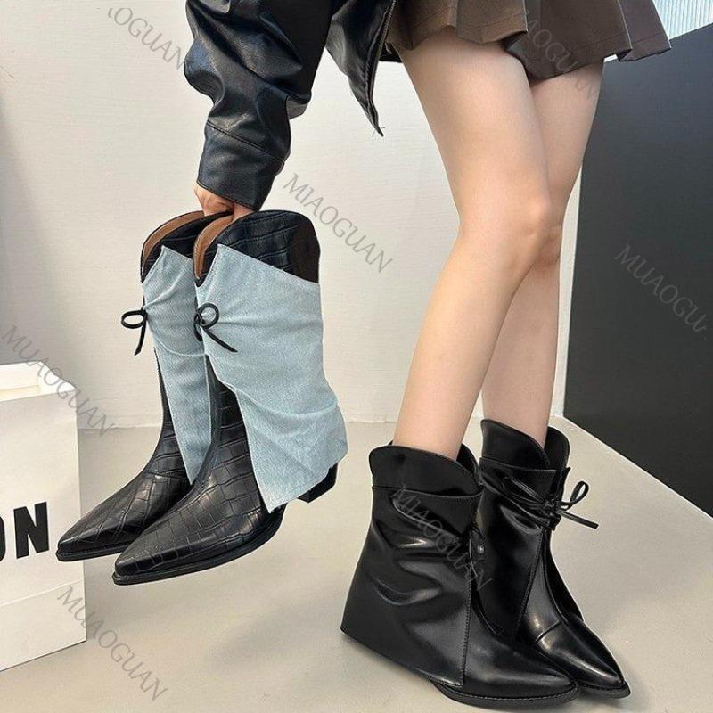 Модные Модные Ковбойские Сапоги с Острым Носком для Женщин, Цветные Блоки, на Толстом Каблуке, Женские Сапоги до Середины Икры, Винтажные Короткие Ботинки — купить товар онлайн с бесплатной доставкой по всему миру!