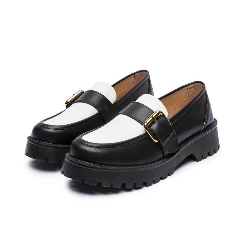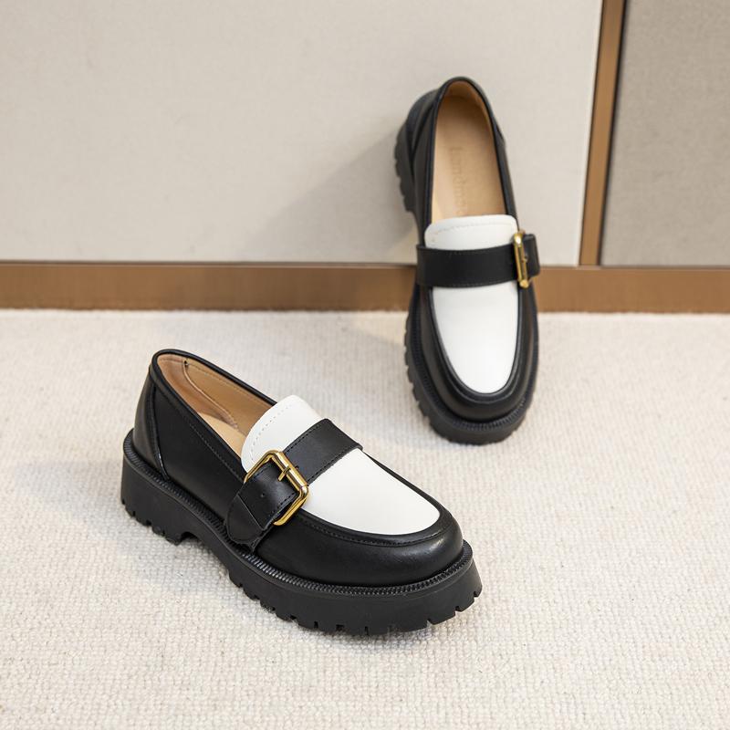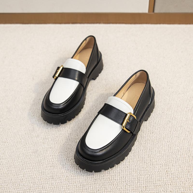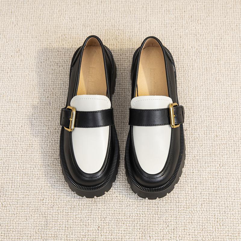Модная обувь Женские лоферы Натуральная кожа Весна Большой размер Британский стиль Туфли для школьницы Сочетание цветов Модные оксфорды Женские