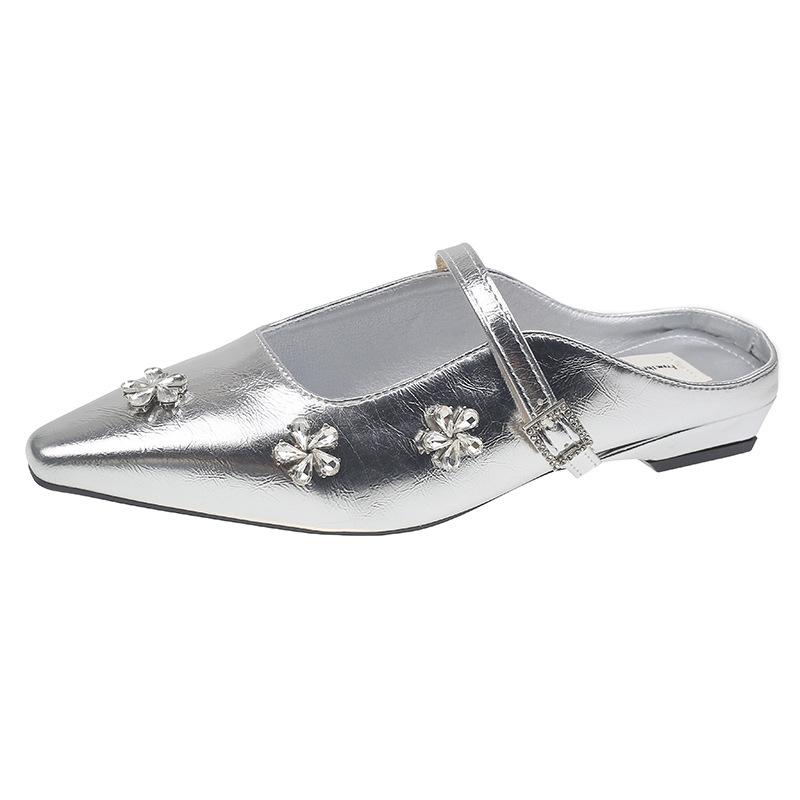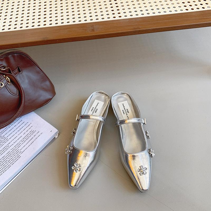 Мода 2025 Женская летняя верхняя одежда весна новинка корейский французский стиль темперамент серебристые туфли-лодочки удобные сандалии на толстом каблуке