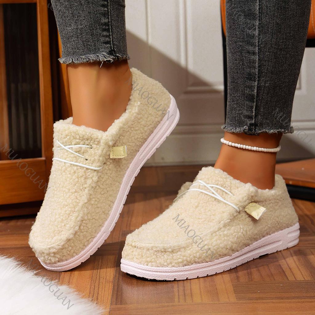 Модная осенне-зимняя новая повседневная хлопковая обувь женская на плоской подошве с подкладкой теплая удобная меховая обувь-лоферы для женщин однотонные на шнуровке