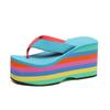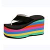 Модные женские шлепанцы на платформе Летняя обувь Мода 10см Супер высокий каблук Радужные сандалии на толстой подошве Тапочки для отдыха Пляжные шлепки