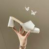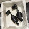 Модные женские летние тапочки с открытым носком, сандалии на массивном высоком каблуке, шлепанцы, туфли для вечеринки, женские шлепанцы, однотонные, конфетного цвета, большой размер 35-46