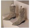 Модные осенне-зимние классические ботинки челси для женщин, замшевые, с острым носком, на танкетке, ботильоны, простые, удобные, ковбойские боты, женские