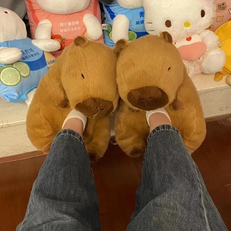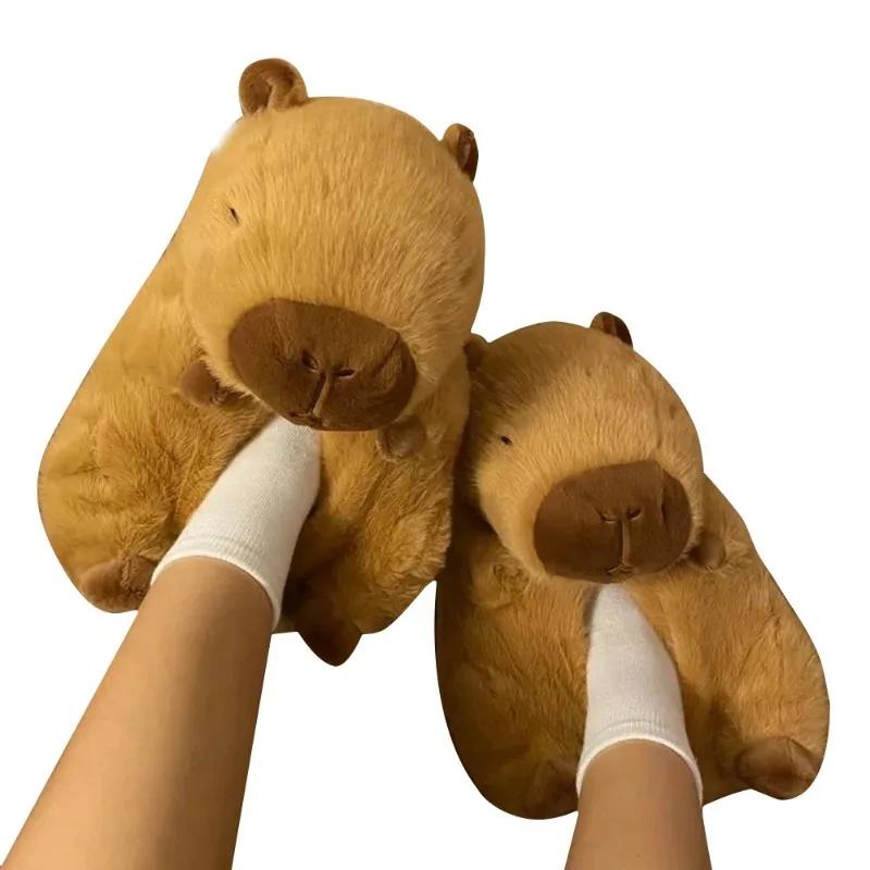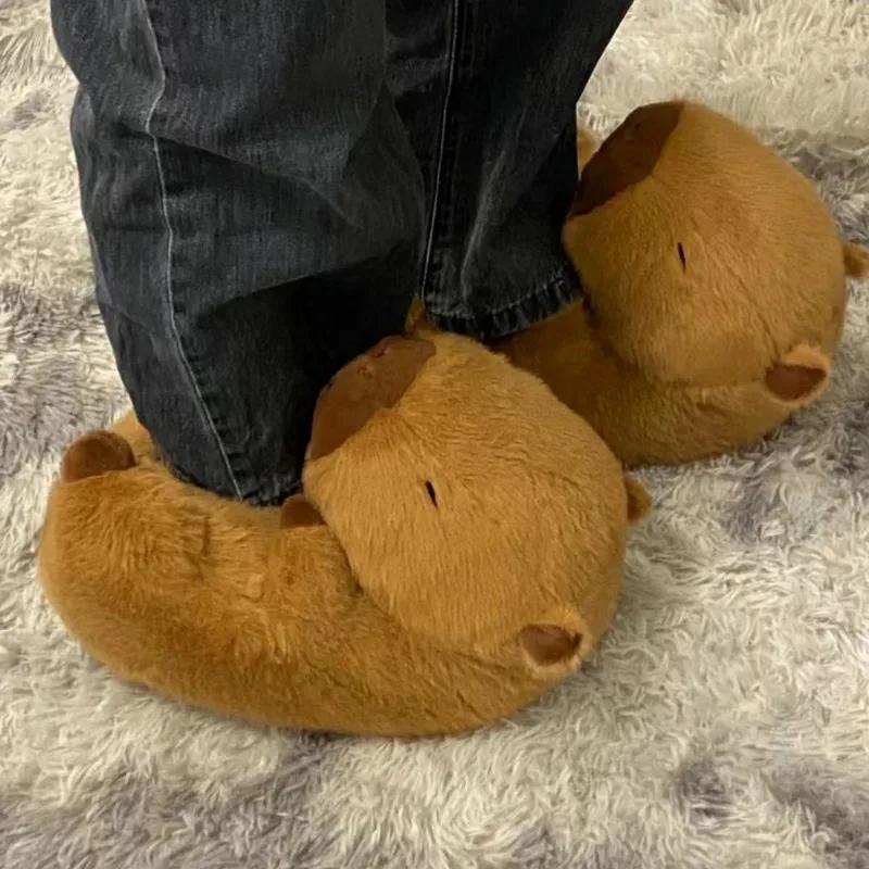 Модные плюшевые тапочки-капибары для женщин, мультяшные, милые, мягкие, плюшевые тапочки с животными, уютные сандалии-капибары, зимние домашние теплые тапочки