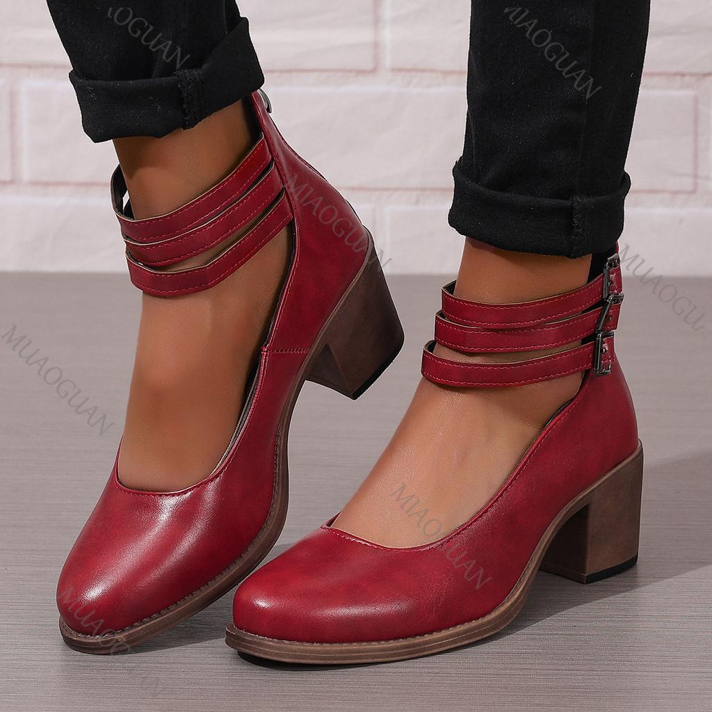 Модные Элегантные Женские Туфли-Лодочки Массивный Высокий Каблук Ремешки на Щиколотке Однотонные Туфли на Каблуке для Вечеринки Свадебные Женские Большого Размера Каблуки Женские
