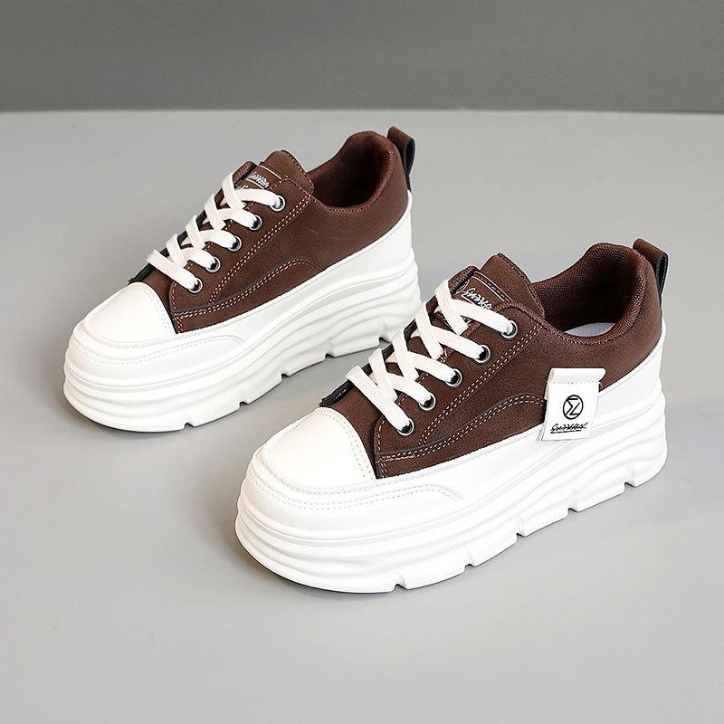 Модная женская обувь на платформе Весна/Осень Уличные Удобные Кроссовки на шнуровке с высокой толстой подошвой Универсальная студенческая обувь для скейтборда