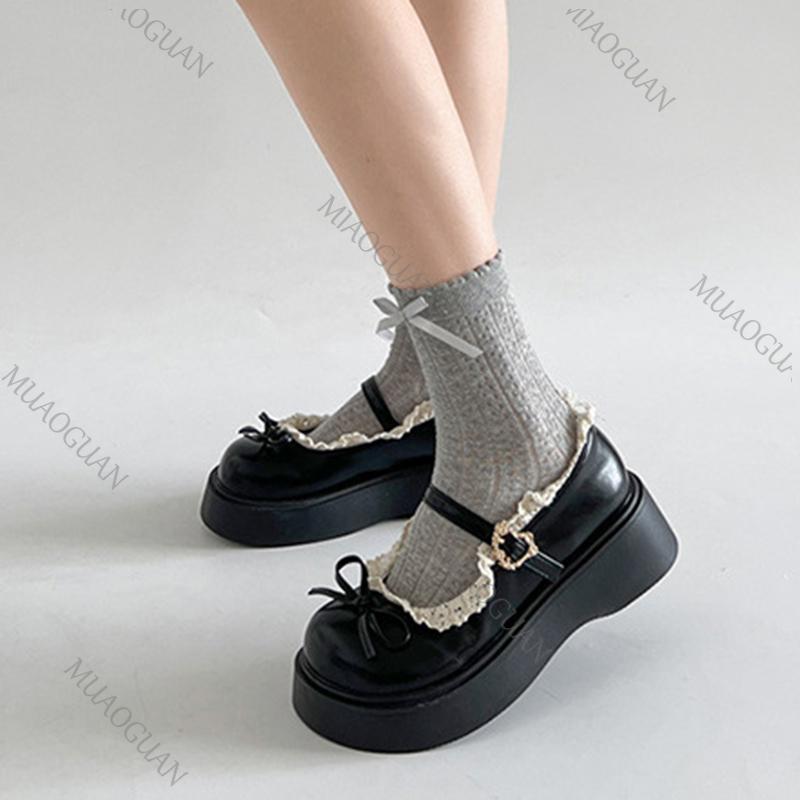 Модная французская коричневая обувь Лолита с круглым носком и толстой подошвой, новая весенняя обувь Мэри Джейн с неглубоким вырезом, повседневные лоферы на плоской подошве с кружевом