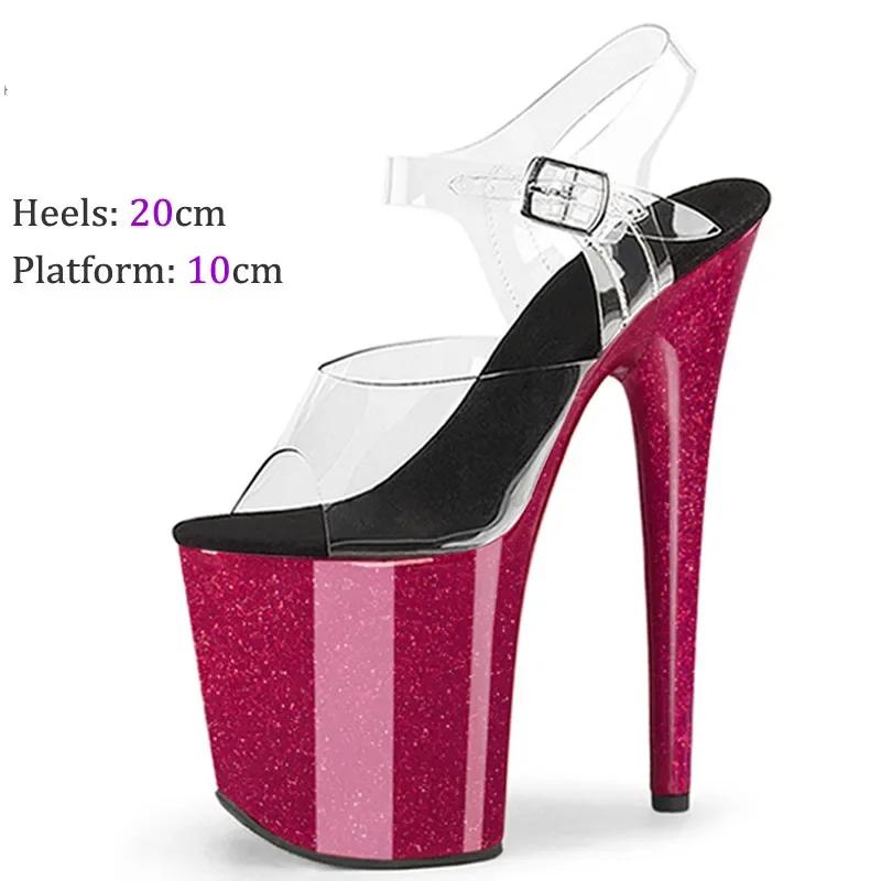 Модные 20 см Высокие Каблуки Сексуальные Платформы Сандалии Стриптиз Обувь для Танцев Женские Свадебные Разноцветные Большие Размеры Женские Сандалии Лето