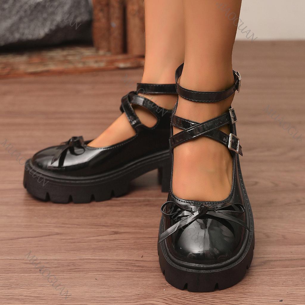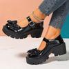 Модные ретро туфли Мэри Джейн одинарные 2025 новые весенне-осенние черные на массивном каблуке женские туфли ремешок на щиколотке пряжка круглый носок лодочки лоферы