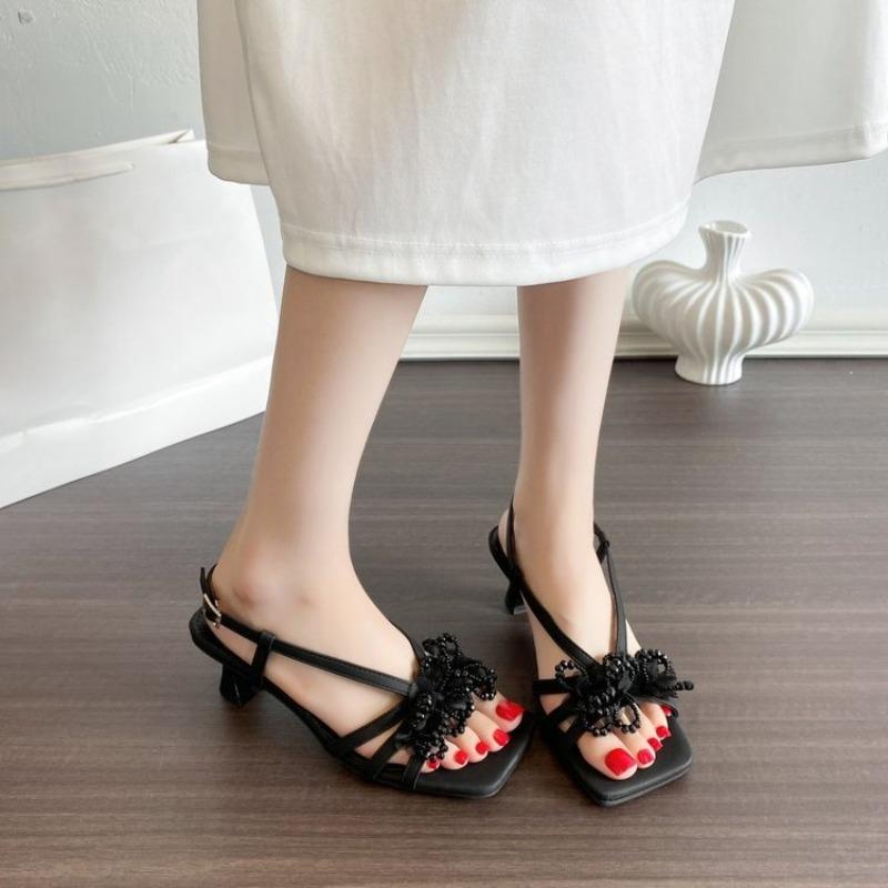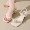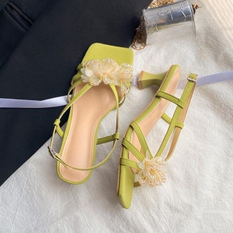 Модные летние новые темпераментные цветочные сандалии женские удобные и универсальные дизайн для улицы квадратный носок высокие каблуки