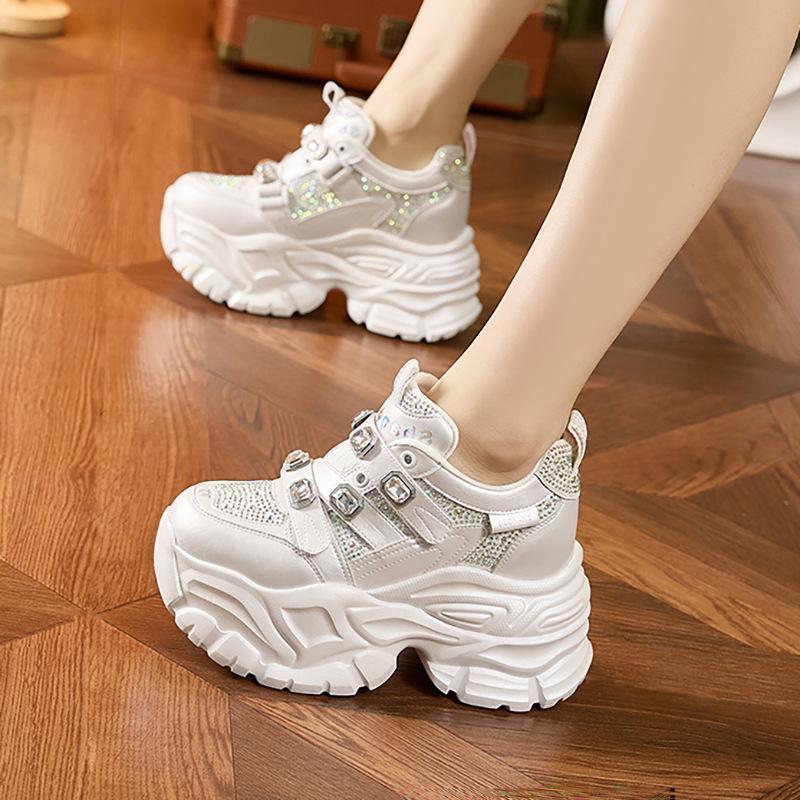 Мода 2025 Весна Новые Кроссовки на массивной подошве в стиле «папиных», женские, платформа, одинарные туфли с водяными бриллиантами, модные кроссовки на скрытой платформе
