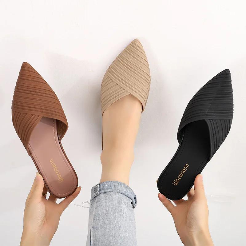 Модная трендовая обувь для женщин Летний модный дизайн Элегантные мюли шлепанцы Уличные Однотонные ПВХ пластиковые Остроносые Дамские Полуслайды