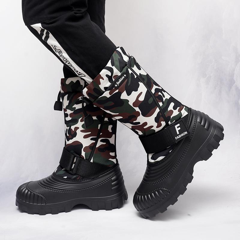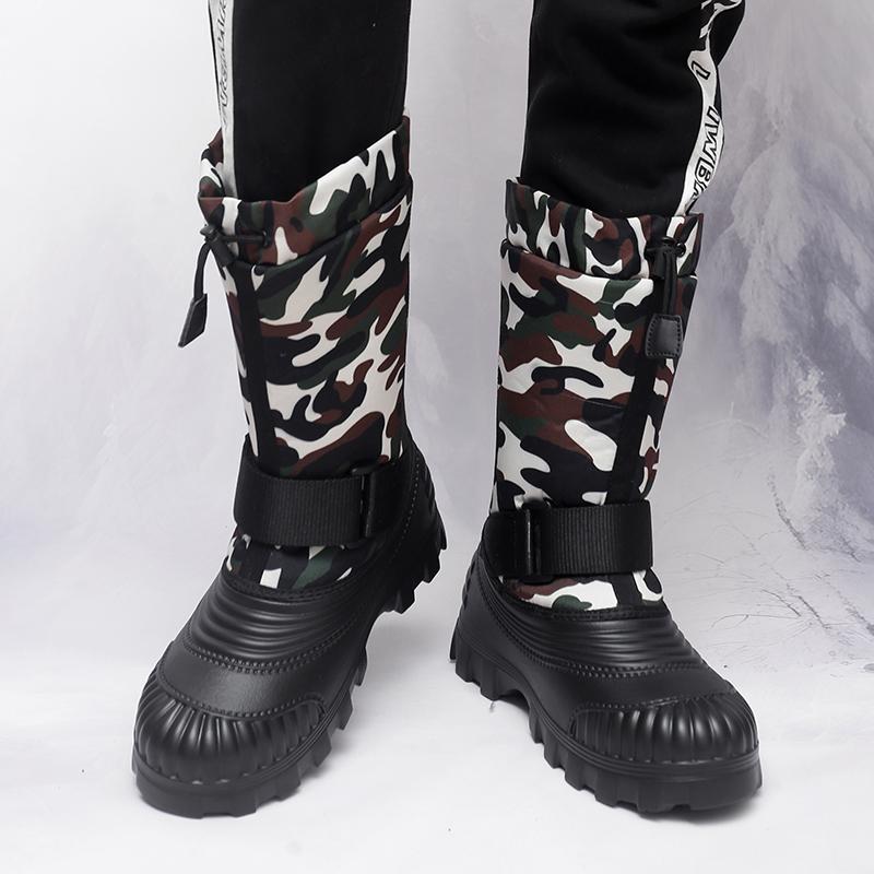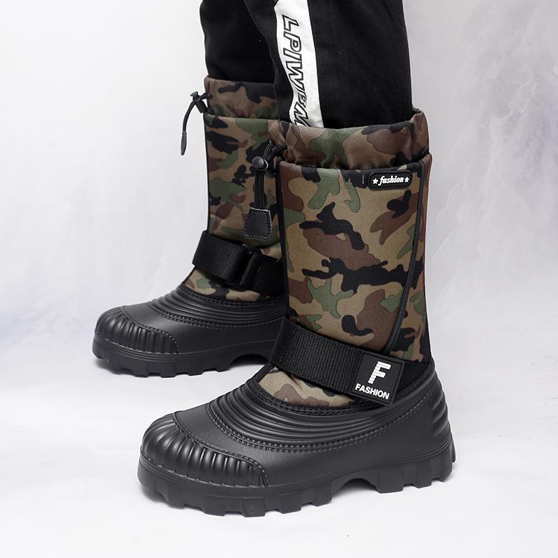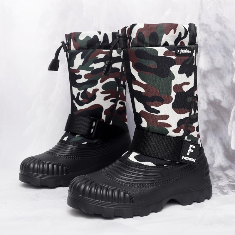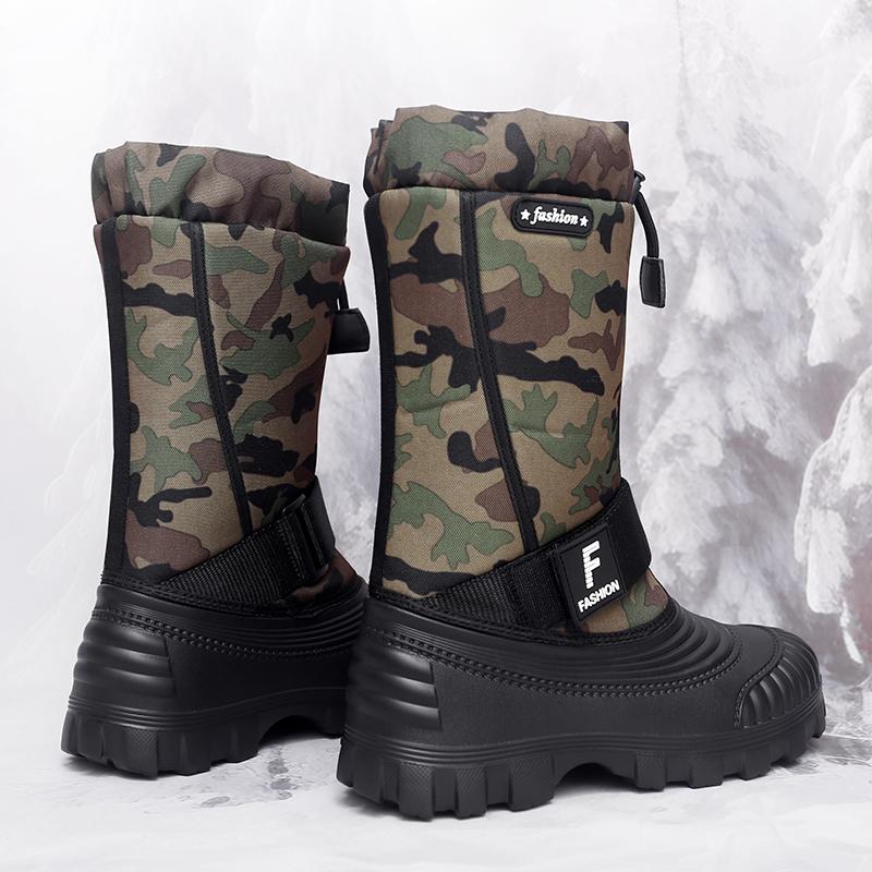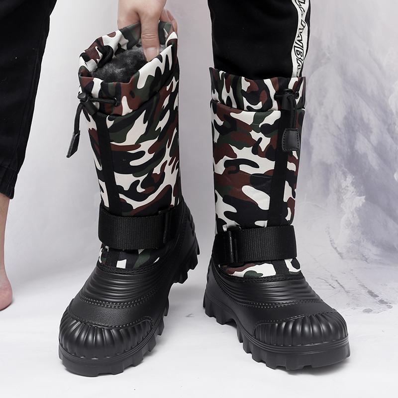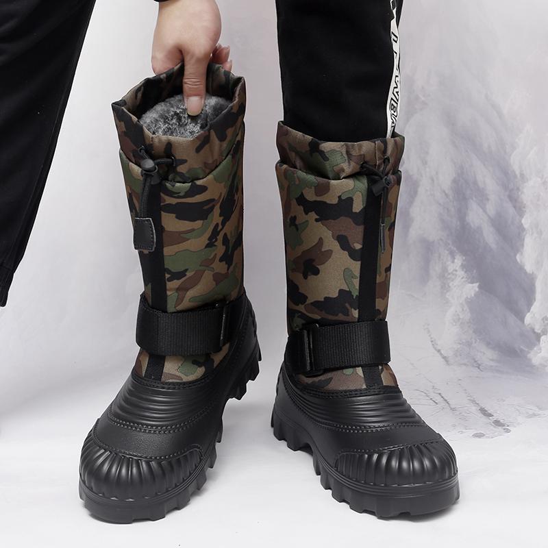 Мужские зимние теплые ботинки для снега, резиновые походные ботинки, камуфляжные сапоги до колена, водонепроницаемые, большого размера