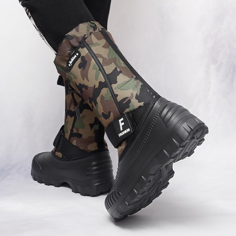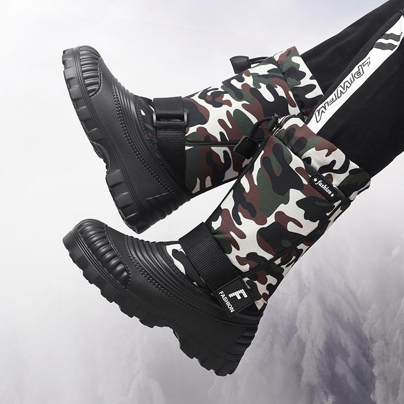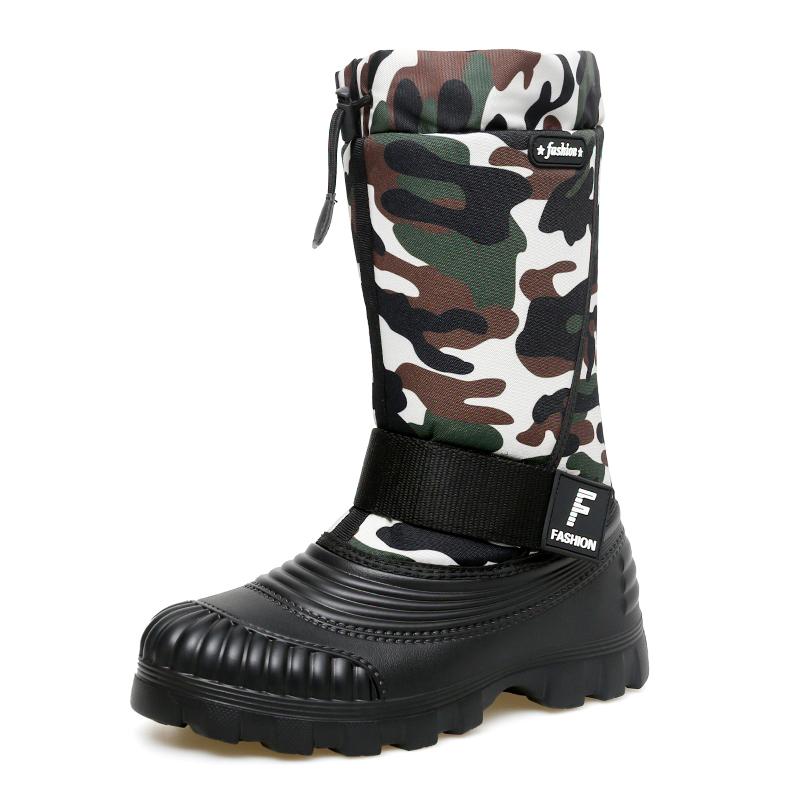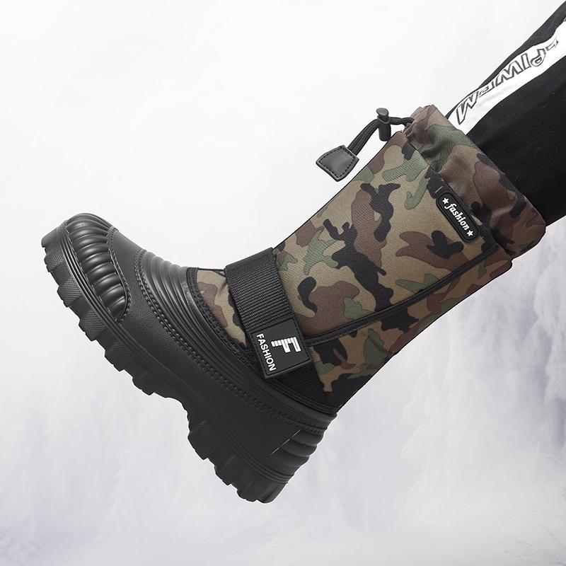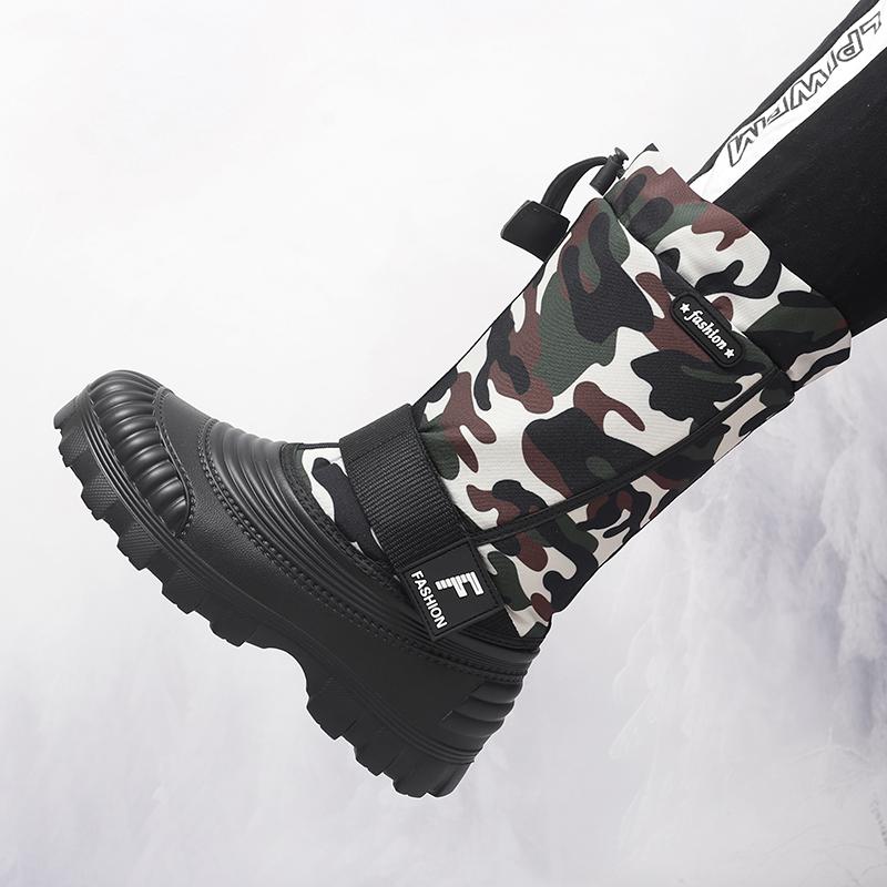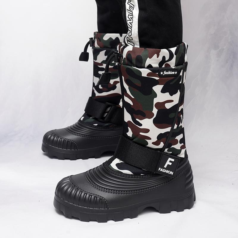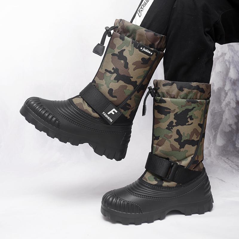 Мужские зимние теплые ботинки для снега, резиновые походные ботинки, камуфляжные сапоги до колена, водонепроницаемые, большого размера