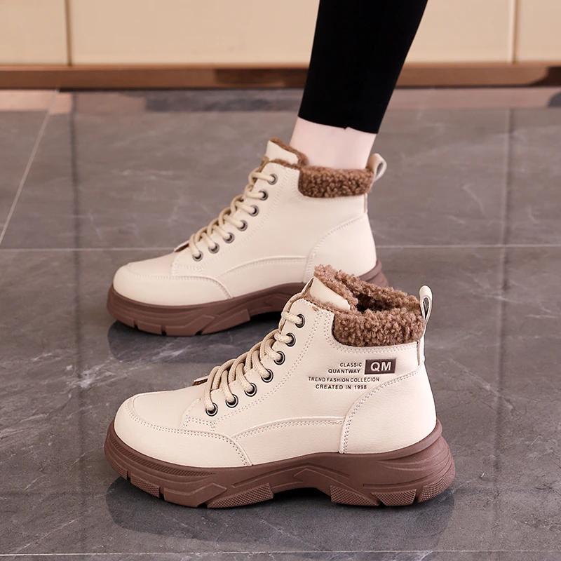 Модные женские хлопковые ботинки 2024 Зима Новые Женские Плюшевые Теплые Студенческие Ботильоны на Высокой Подошве на Шнуровке с Увеличением Высоты — купить товар онлайн с бесплатной доставкой по всему миру!