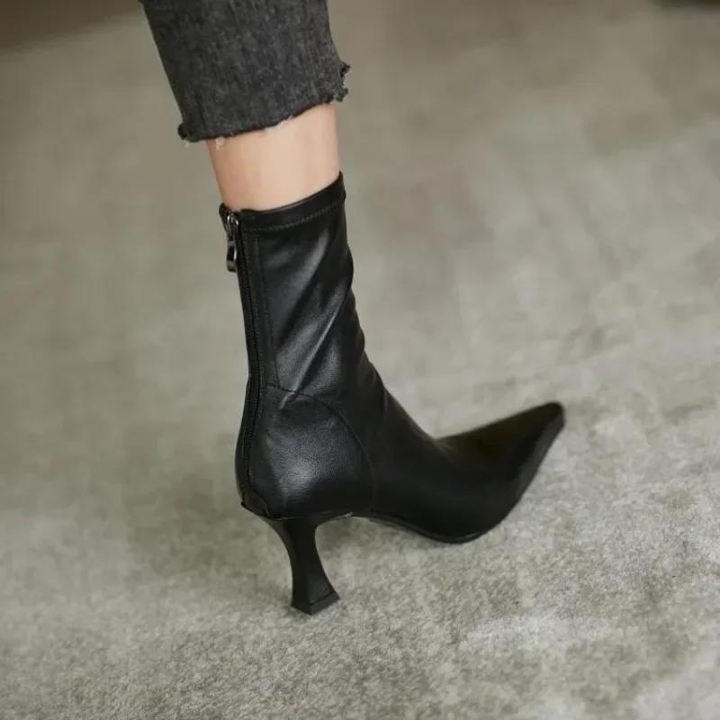 Мода 2024 года, новые модные рабочие ботинки с острым носком на тонком каблуке, однотонные женские ботинки с застежкой-молнией сзади, модные формальные ботинки