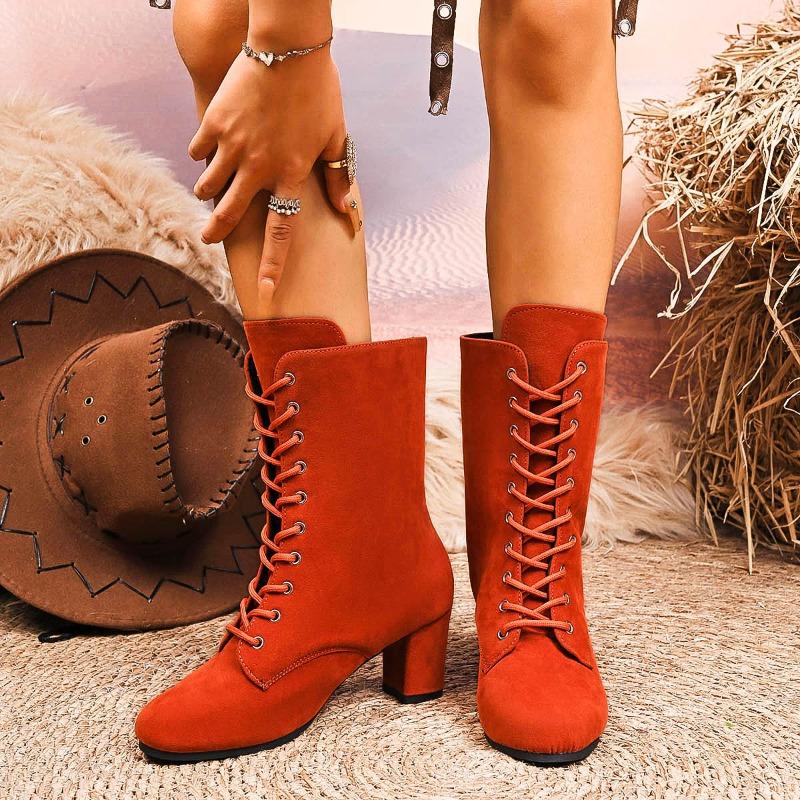 Модные французские винтажные замшевые полусапоги до середины бедра, осенняя новинка, круглый носок, шнуровка спереди, нескользящие, износостойкие туфли на блочном каблуке