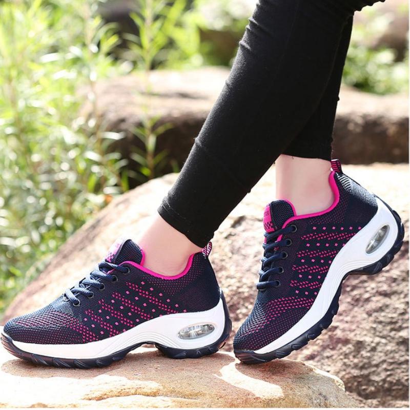 Женская обувь для танцев с воздушной подушкой, дышащая обувь на платформе, повседневные кроссовки из вязаной сетки, спортивная обувь для бега