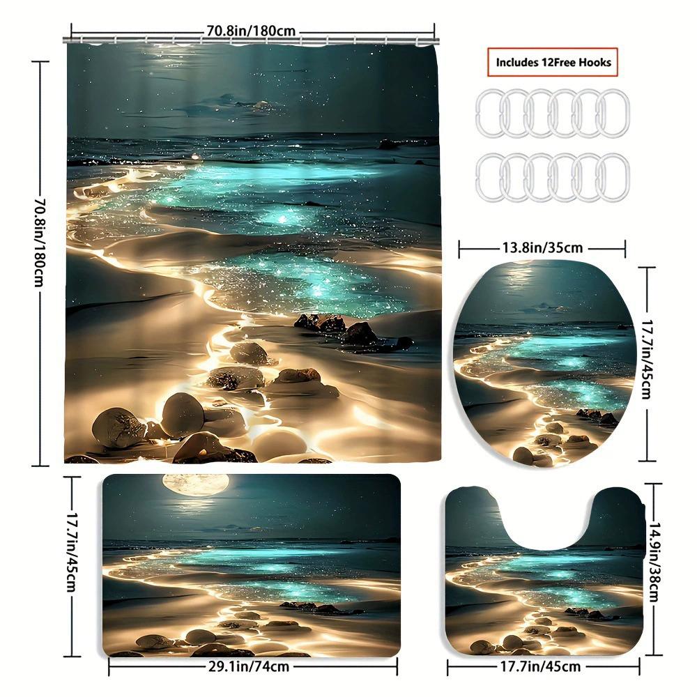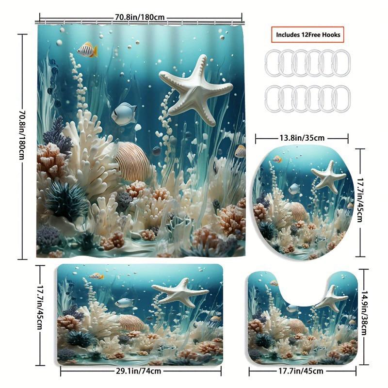 Очаровательный Подводный Коралловый Риф Набор для Ванной - Водонепроницаемая Шторка для Душа, Чехол на Крышку Унитаза, Коврик для Ванной и Контурный Коврик