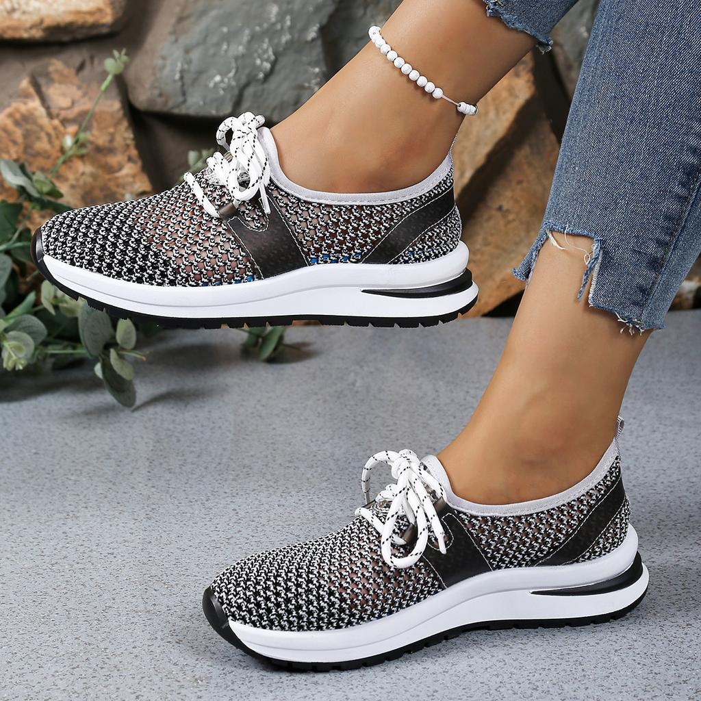 Модные Новые модные и дышащие сетчатые толстоподошвенные туфли на шнуровке с круглым носком больших размеров в стиле кэжуал для женщин летом 2025 года