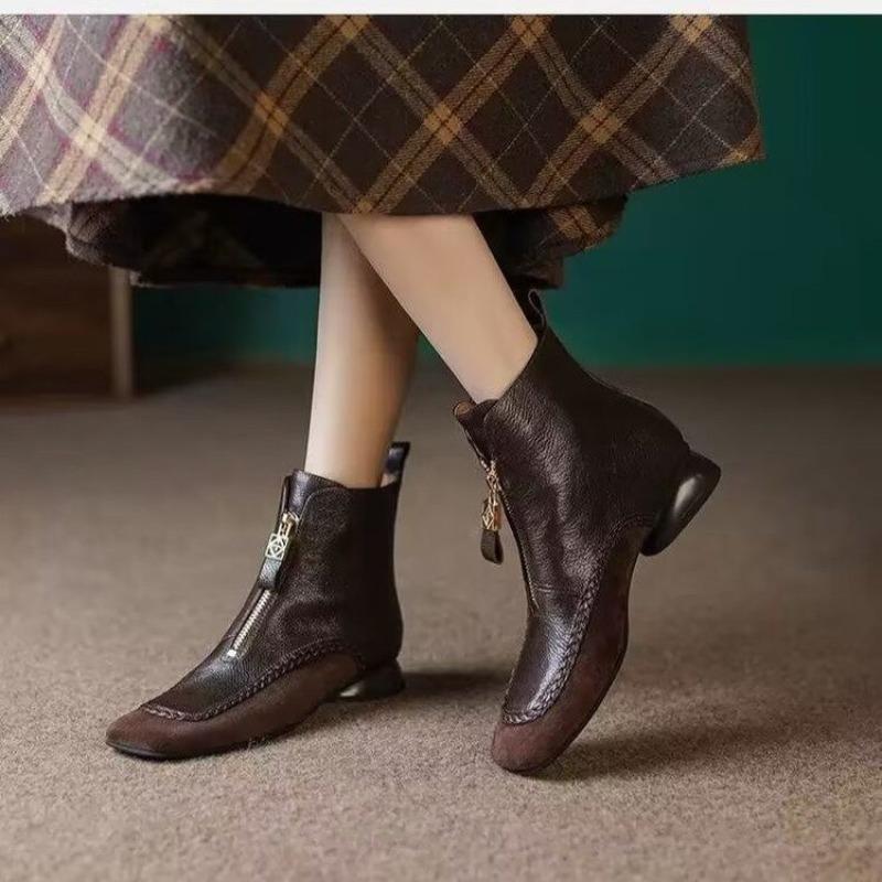 Модные французские ботильоны на блочном каблуке, удобные, с квадратным носком, на мягкой подошве, с мягким верхом, винтажные, зимние, женские туфли