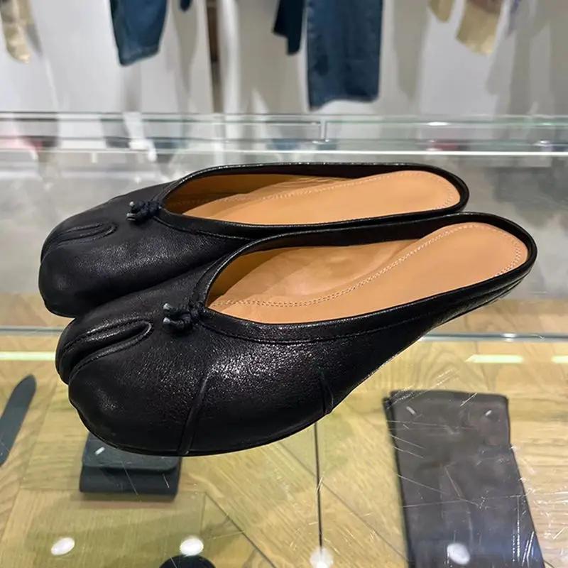 Модные женские тапочки с раздельным пальцем таби ниндзя слипоны балетки с круглым носком женские мелкие ленивые слипоны лодочки с ремешком на пятке мюли обувь мягкие лоферы