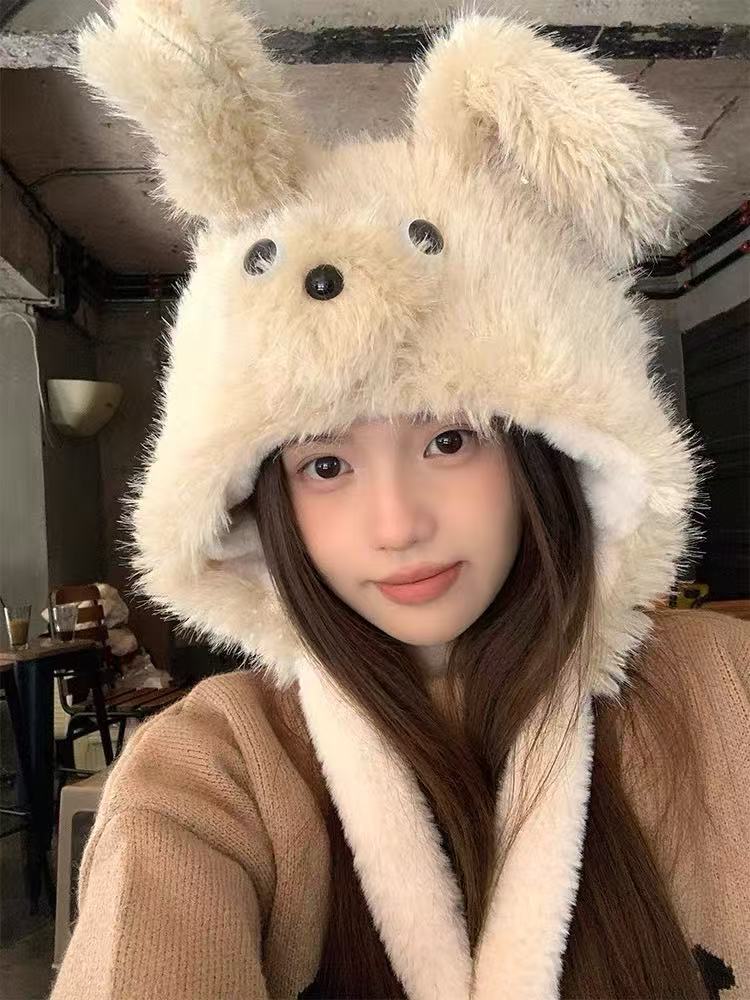 Плюшевая шапка-медведь женская линия мультяшная милая пушистая шапка зимняя холодная теплая для улицы защита ушей от холода