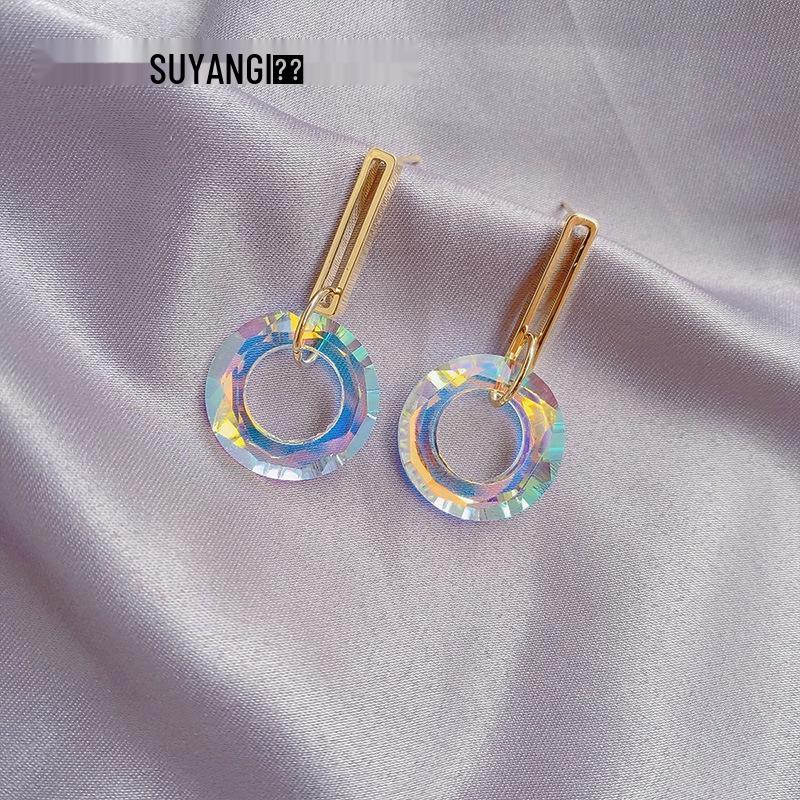 Весенне-летние серьги-кольца с кристальным градиентом: Женские модные переливающиеся серьги-подвески