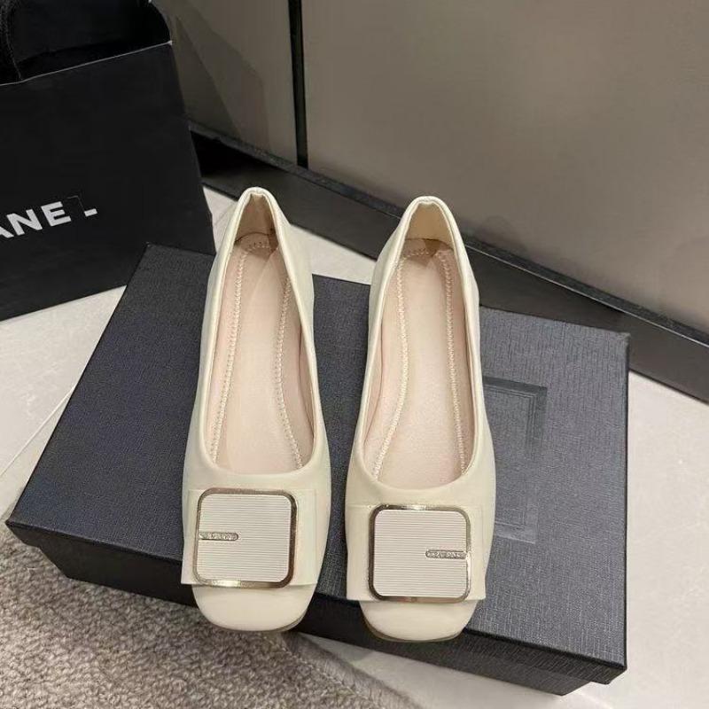 Женские туфли-лодочки на плоской подошве, весенне-летние, новая модель, на одну педаль, с мягкой подошвой, четырехсезонные женские туфли, с круглым носком, золотой квадратной пряжкой, туфли Doudou для женщин