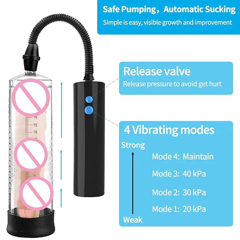 Usb Electric Acrylic Penis Pump Male Penis Enlargement Pump Vacuum Pump for Penis Penile Training Extender Cock Sex Toy for Men