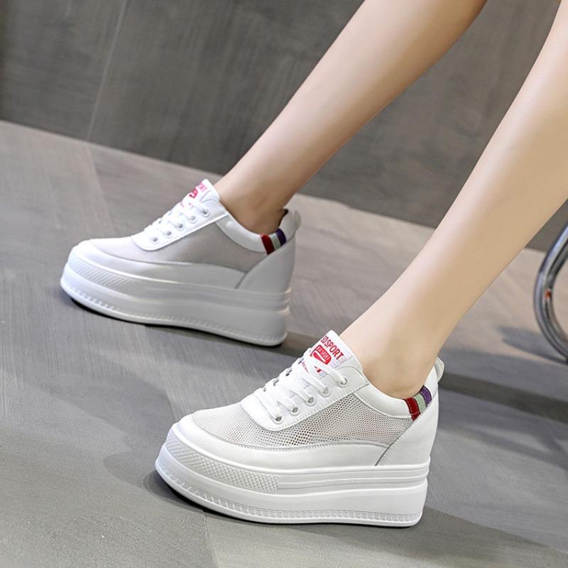 Трендовые новые женские туфли на толстой подошве и скрытой платформе, сетчатые белые туфли, повседневная спортивная обувь